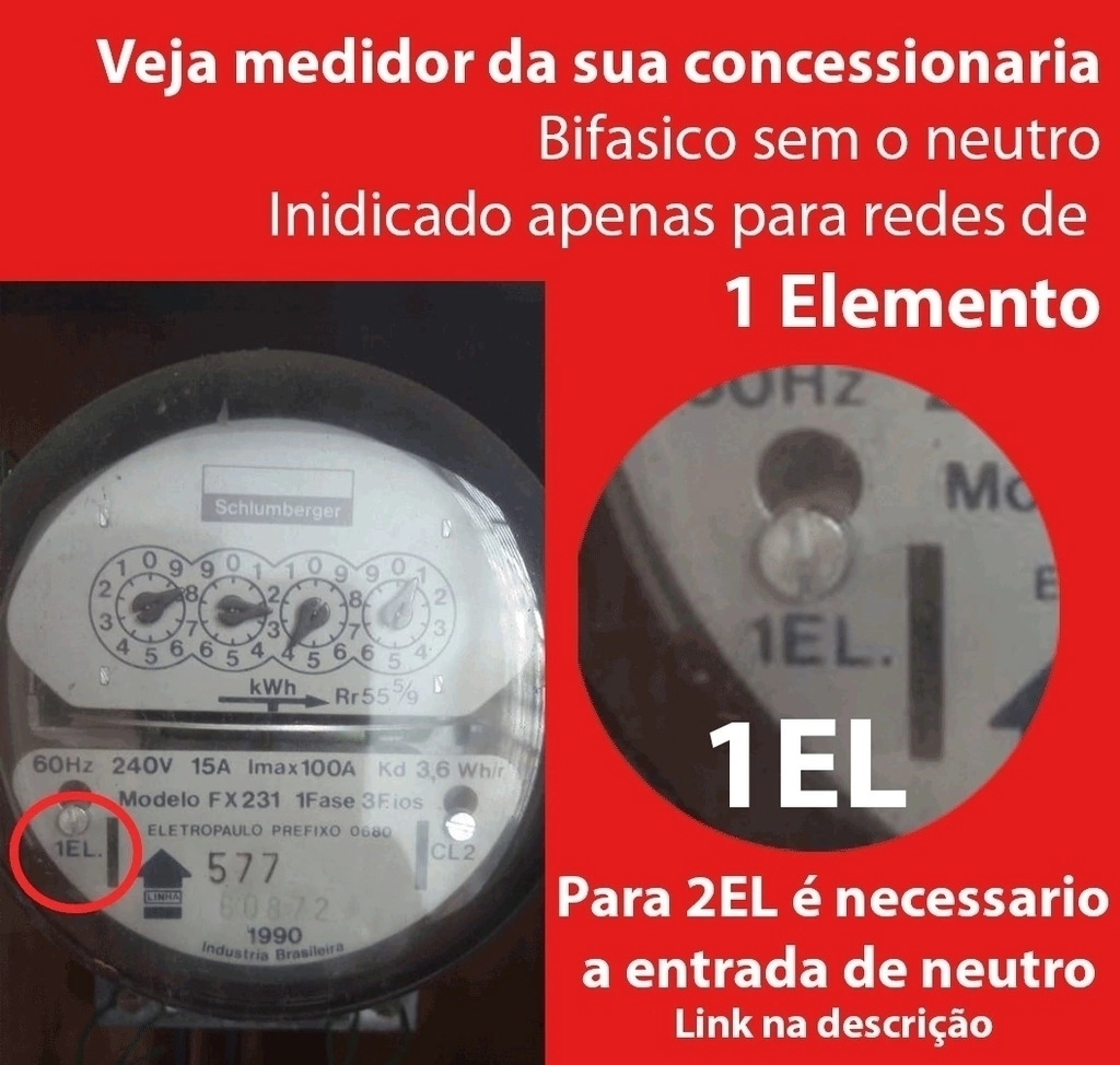 Medidor de Energia para individualização interna. Mede 110V e 220V, neutro NÃO passa no medidor, exclusivo para redes de 1 elemento